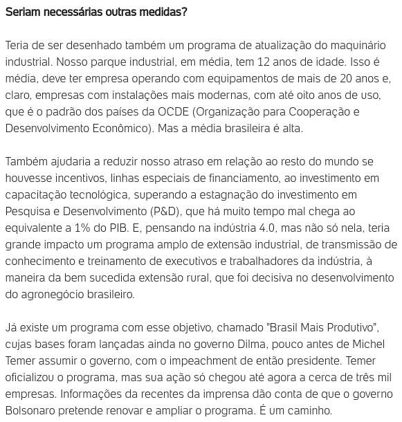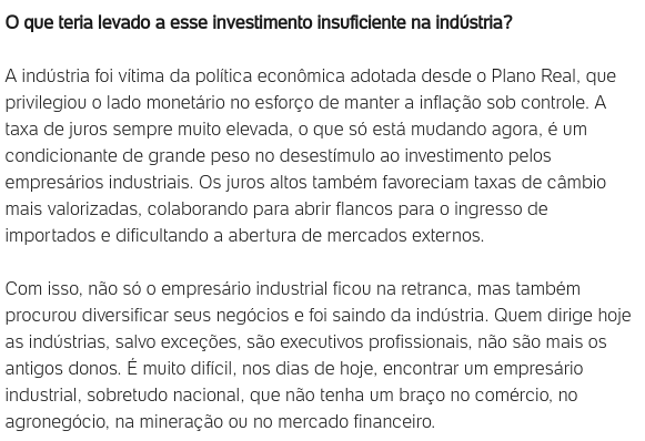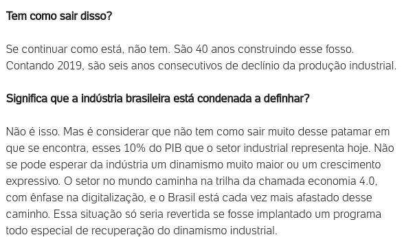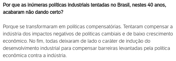 Os internautas interessados em estudar o problema da indústria brasileira, que este blog considera uma questão central para o desenvolvimento nacional, devem ler a entrevista do diretor executivo do Iedi (Instituto de Estudos para o Desenvolvimento Industrial), Julio Cesar Gomes de Almeida, para o blog do jornalista José Paulo Kupfer, no UOL.