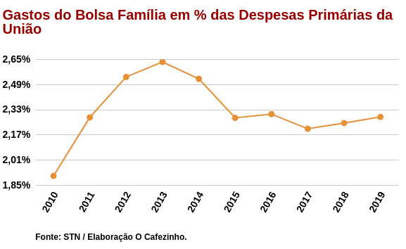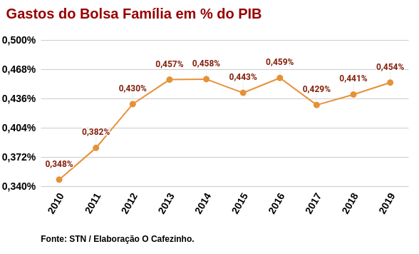 Considerando os gastos do Bolsa Família em proporção ao PIB e às Despesas Primárias do governo, também houve aumento em 2019.