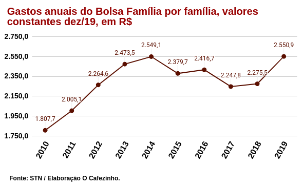 O governo Bolsonaro está pagando um pouco mais para um número menor de famílias. A decisão provavelmente foi intuitiva, sem grandes estudos científicos que a fundamentassem, e uma consequência da promessa populista feita durante a campanha eleitoral de pagar o décimo terceiro ao BF.