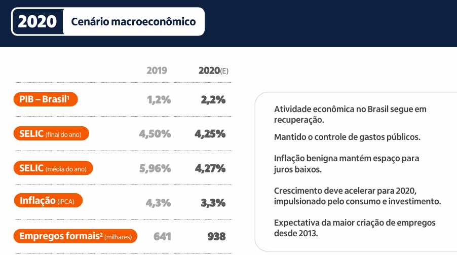 Para 2020, o banco projeta um crescimento de 2,2% do PIB.
