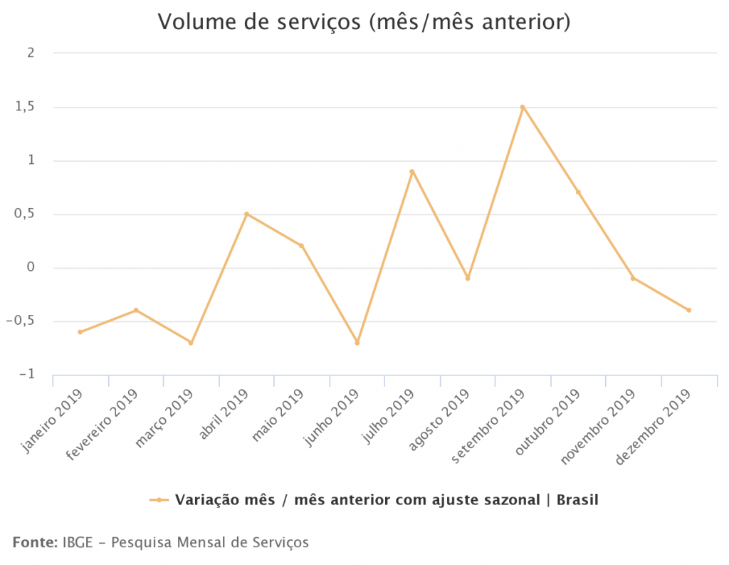 O dólar intensificou a alta depois de divulgação, pelo Instituto Brasileiro de Geografia e Estatística (IBGE), de que as vendas no varejo caíram 0,1% em dezembro na comparação com novembro, mas fecharam 2019 com crescimento de 1,8%. O desempenho do comércio abaixo do esperado abre espaço para novas reduções de juros pelo Copom.