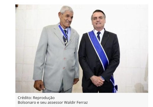 Waldir Ferraz, durante muitos anos uma espécie de “faz tudo” de Jair Bolsonaro, foi condecorado pelo presidente com a “Ordem do Rio Branco”.