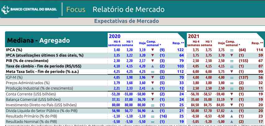 Estas projeções estão no boletim Focus divulgado hoje pelo Banco Central.