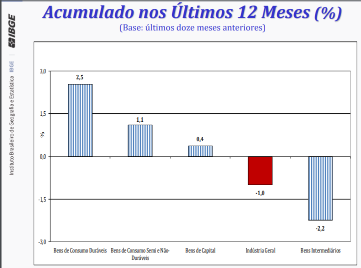 Entretanto, qualquer tom otimista agora, diante da absoluta ausência de uma estratégia governamental, de um projeto de desenvolvimento, que possa modernizar, de fato, a nossa base produtiva, soa ridículo. Até porque se deve olhar para o período acumulado de 12 meses, e não apenas paras as oscilações mensais. E no acumulado de 12 meses, os números continuam negativos: queda de 1%.