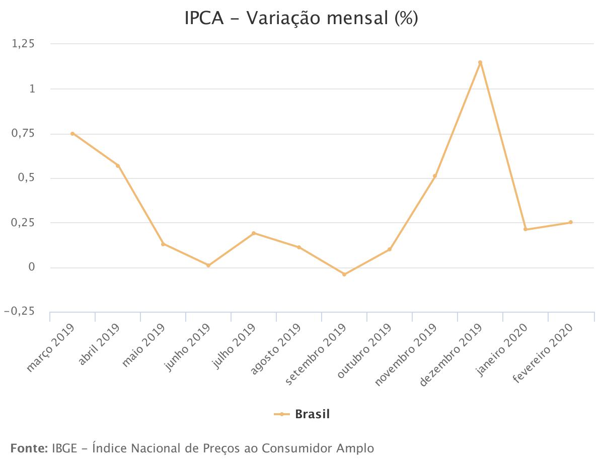 Agência IBGE — A inflação do país foi a 0,25% em fevereiro, menor resultado para o mês desde 2000, quando o índice foi de 0,13%. A alta foi puxada pelos reajustes praticados no início do ano letivo, especialmente referentes aos cursos regulares (4,42%). O resultado de fevereiro foi acima da taxa de 0,21% em janeiro. Os dados são do Índice Nacional de Preços ao Consumidor Amplo (IPCA), divulgados hoje (11) pelo IBGE.