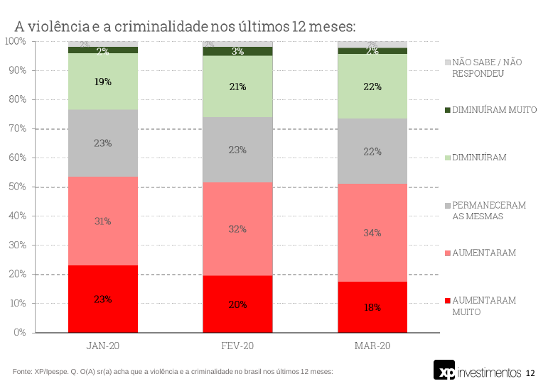 Esse gráfico também me parece importante: 44% dos entrevistados disseram que a violência de criminalidade diminuiu, mas 42% disseram que aumentou.