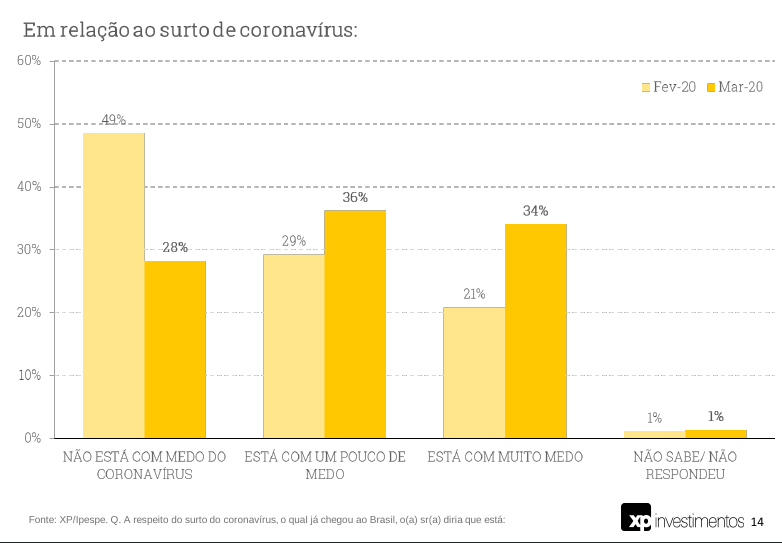 70% dos entrevistados disseram que “estão com um pouco de medo”, ou “muito medo” do surto de coronavírus.