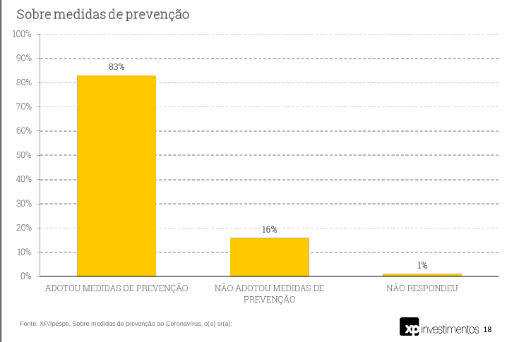A maioria absoluta dos entrevistados, 83%, respondeu que já adotou medidas de prevenção. É espantoso, porém, identificar que 16% tenham respondido que “não adotaram”.