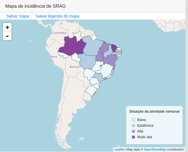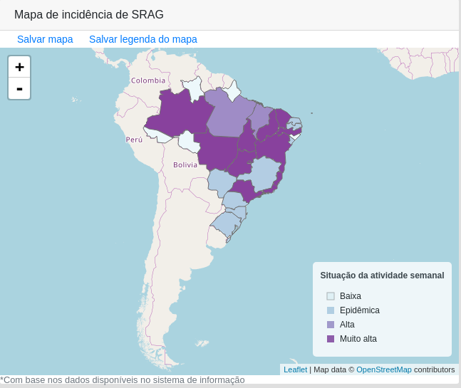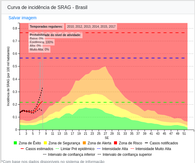 A linha vermelha mostra um aumento dramática dos casos de SRAG em todo país.