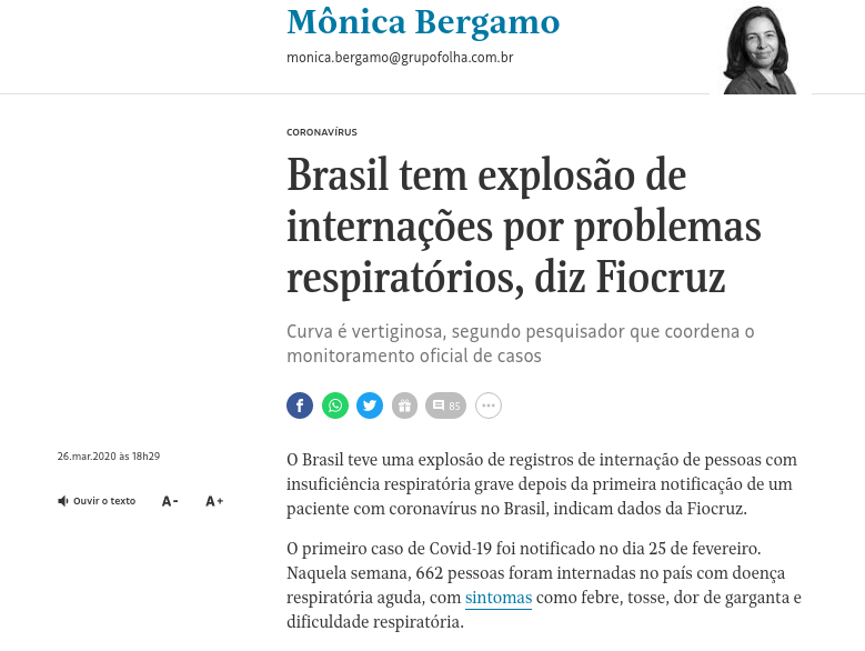A Fiocruz tem um departamento que monitora casos de “síndrome respiratória grave (SRAG)” nos hospitais de todo país.