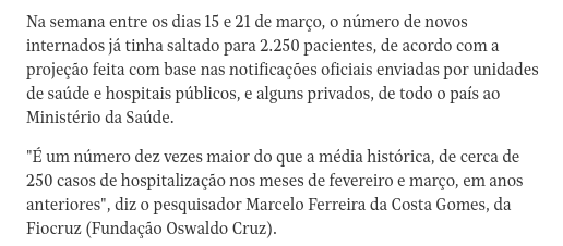 Agora veja a situação do país na décima segunda semana do ano, que terminou no último dia 22 de março. Agora estamos na décima terceira semana, que ainda não terminou.