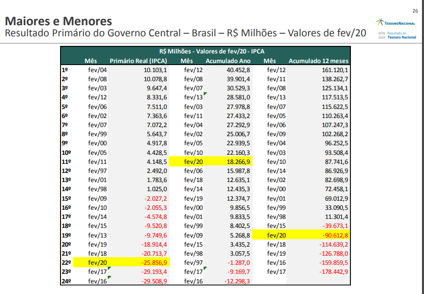 A projeção foi feita hoje, durante a apresentação dos relatórios do Resultado Fiscal de Fevereiro (clique aqui para baixar a apresentação).