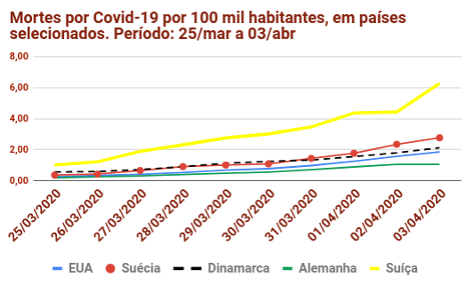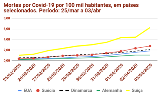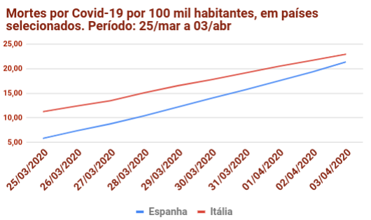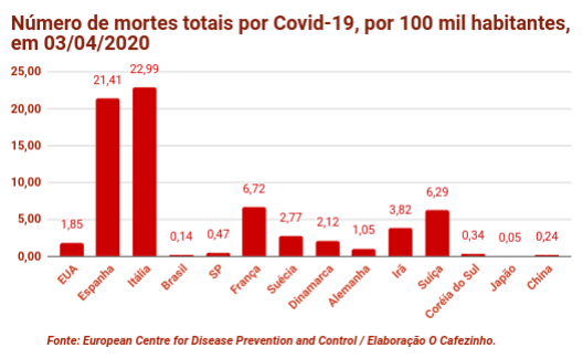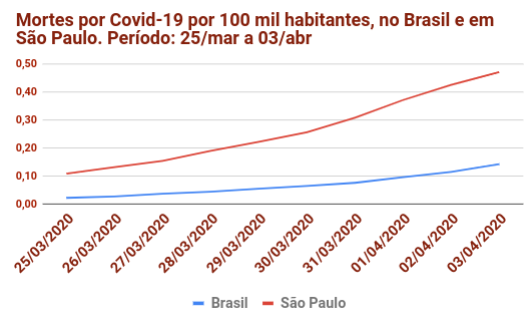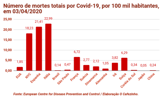 É possível saber, por exemplo, que o número de mortes acumuladas por Covid-19 em Nova York, calculado por grupo de 100 mil habitantes, já é similar ao de países como Espanha e Itália, que vivem situação dramática.