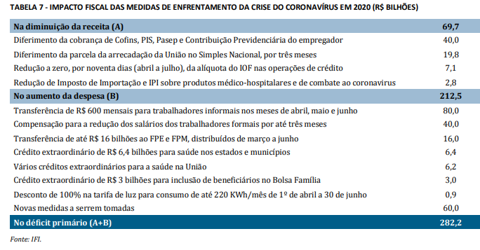Covid-19: IFI estima gastos pra combater a crise do coronavírus em R$ 282 bilhões