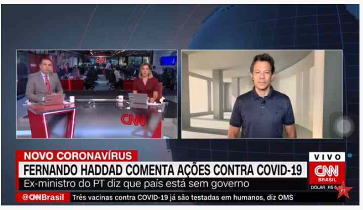 O ex-ministro Fernando Haddad deu entrevista à CNN Brasil para falar sobre a crise do coronavírus.