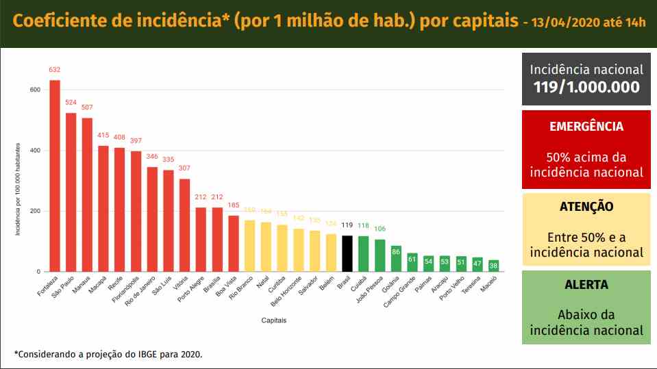 Atualmente, os estados do Amazonas, Amapá, Distrito Federal, Ceará, São Paulo, Rio de Janeiro e Roraima estão em estado de emergência, ou seja, precisam de redobrar os cuidados em relação à prevenção do coronavírus por estarem 50% acima da incidência nacional de casos de coronavírus.