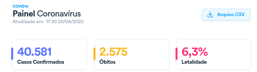 Agência Brasil — O número de mortes em razão da pandemia do novo coronavírus (covid-19) chegou a 2.575, conforme novo balanço divulgado pelo Ministério da Saúde hoje (20). Já os casos confirmados subiram para 40.581. O índice de letalidade ficou em 6,3%.
