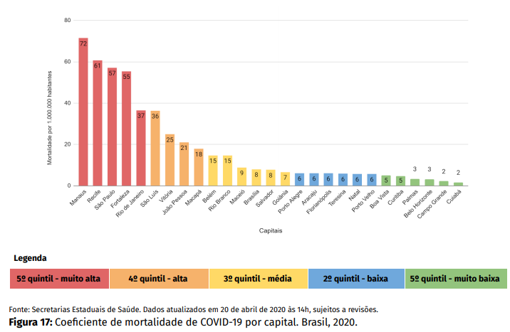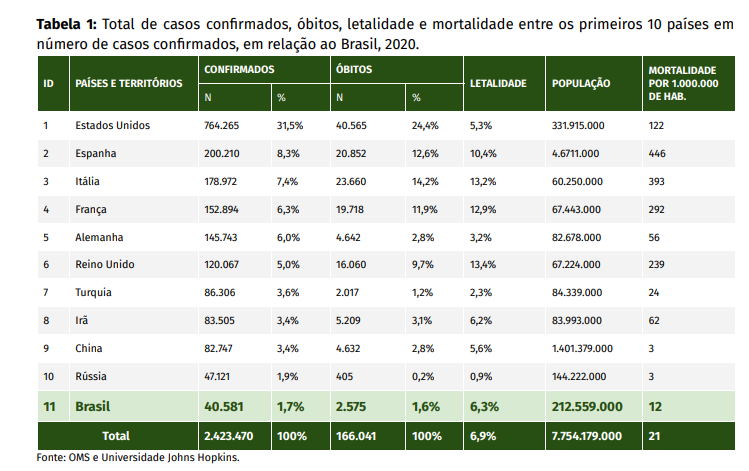 Todos os estados brasileiros registram casos e mortes por coronavírus. São Paulo concentra a maior parte das notificações, com 15.385 casos e 1.093 mortes. Rio de Janeiro aparece em segundo lugar, com 5.306 casos e 461 óbitos. A taxa de letalidade por coronavírus, atualmente, é de 6,4%.