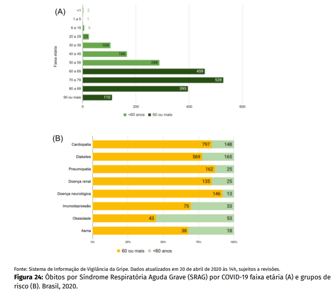 Pessoas acima de 60 anos se enquadram no grupo de risco, mesmo que não tenham nenhum problema de saúde associado. Além disso, pessoas de qualquer idade que tenham comobirdades, como cardiopatia, diabetes, pneumopatia, doença neurológica ou renal, imunodepressão, obesidade, asma e puérperas, entre outras, também precisam redobrar os cuidados nas medidas de prevenção ao coronavírus.