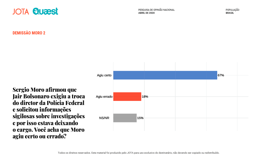 Pesquisa divulgada hoje pelo Jota/Quaest, com entrevistas realizadas no último final de semana, comprova que o estrago na aprovação do presidente Bolsonaro tem sido grande, e não começou na demissão do ministro Moro.