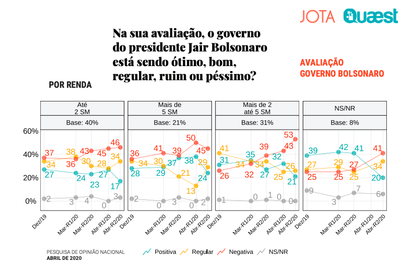 Entre as famílias de maior renda, acima de 5 salários, a aprovação positiva caiu para 24%, enquanto a negativa é de 45%.