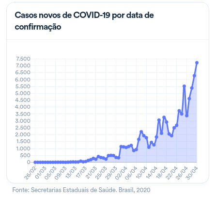 Segundo atualização do Ministério da Saúde divulgada nesta quinta-feira (28), o total de mortes subiu para 5.901. De ontem para hoje, foram registrados 435 novos óbitos, um aumento de 8% em relação a quarta-feira (29), quando foram contabilizados 5.466 falecimentos. A letalidade ficou em 6,9%.
