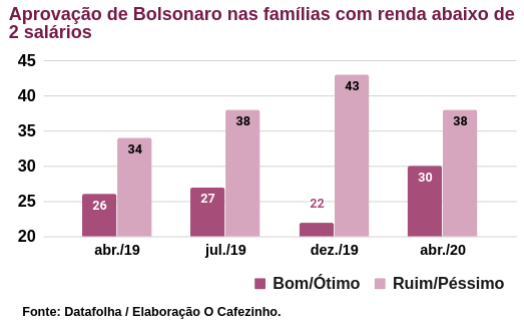 Além disso, é provável que a ajuda de até R$ 1.200 por família (incluindo mãe solteira) já comece a fazer efeito sobre a aprovação do presidente junto aos mais pobres.