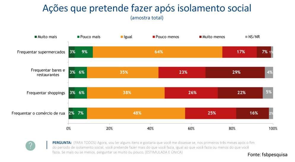 Dentre as principais mudanças, teremos a diminuição do hábito de “frequentar bares, restaurantes, shoppings e comércio de rua”.