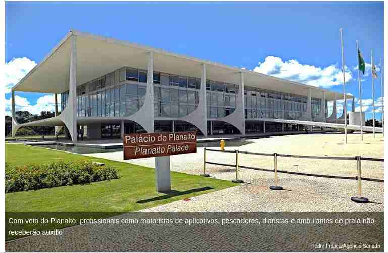 Com veto do Planalto, profissionais como motoristas de aplicativos, pescadores, diaristas e ambulantes de praia não receberão auxílio