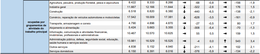 “A informalidade teve queda porque houve uma redução das duas populações que a compõem – empregados sem carteira do setor privado e trabalhadores por conta própria – devido às dispensas dos contratados no quarto trimestre. Isso significa que os trabalhadores sem carteira e os que trabalham por conta própria não estão sendo absorvidos pelo mercado formal”, analisa Adriana.