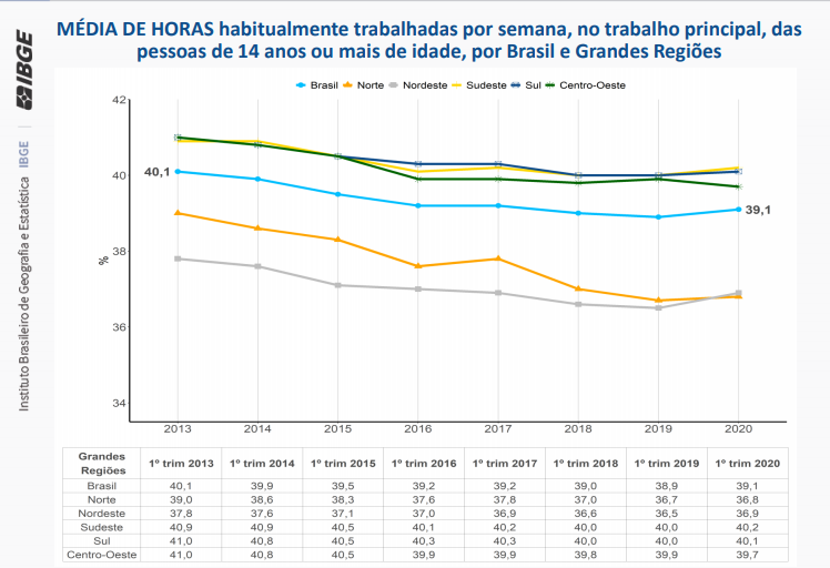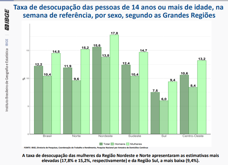 O Nordeste foi a região com as maiores medidas de subutilização da força de trabalho e, na Região Sul, as menores. Entre os estados, as maiores taxas foram no Piauí (45%), Maranhão (41,9%), Bahia (39,9%), Rio Grande do Norte (36,5%), Sergipe (35,9%) e Paraíba (35,1%). Santa Catarina (10,0%), Mato Grosso (14,8%) e Rio Grande do Sul (15,9%), tiveram as menores taxas.