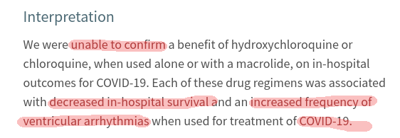 Conclusão: hidroxicloroquina para tratamento de Covid-19 está associada a queda da sobrevivência e aumento de arritmias.