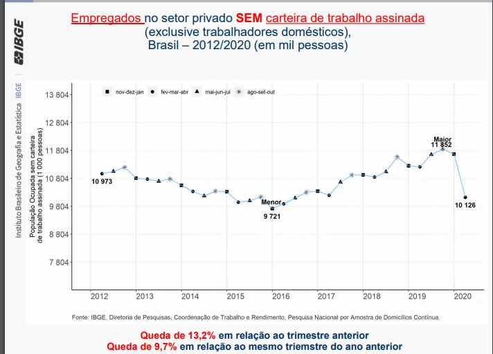 Segundo o IBGE, foram destruídos 4 milhões de postos de trabalho nos últimos 3 meses.