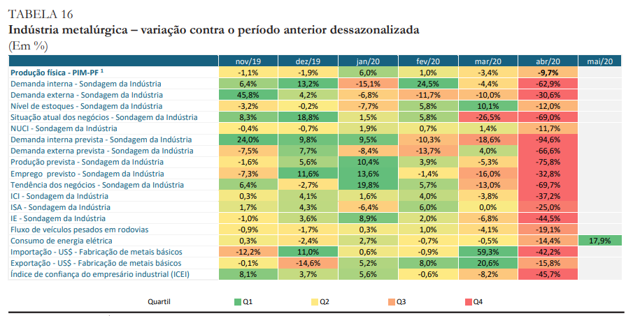 Segundo Leonardo de Carvalho, técnico de planejamento e pesquisa do Ipea, “houve prejuízos menores, mas eu destacaria casos como o da celulose, que caiu um pouco, de um crescimento de 3% em março para um recuo de -1,4% em abril. Os empresários do setor externaram uma perspectiva positiva para a demanda externa e esse fato está relacionado diretamente à Covid-19, que elevou o consumo de papel para fins sanitários e embalagens”.