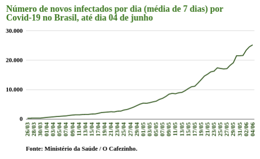 Abaixo, gráficos, apenas do Brasil, que consideram dados até o último dia 4 de junho.
