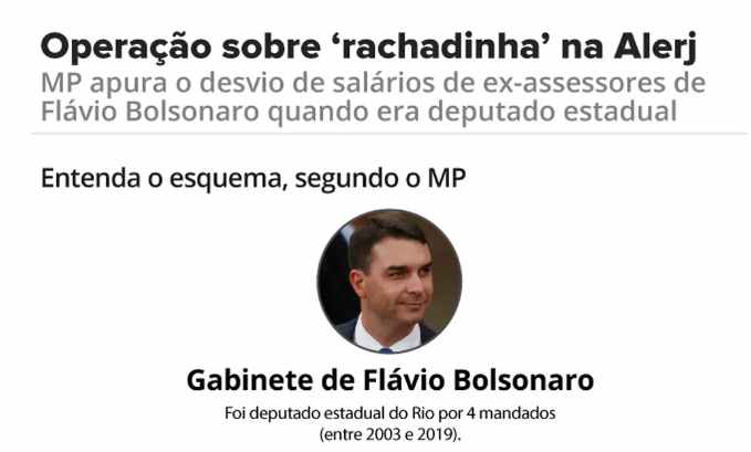 O senador Flávio Bolsonaro é investigado pelo Ministério Público estadual do Rio de Janeiro por ser suspeito de chefiar uma organização criminosa montada para desviar recursos públicos do próprio gabinete, quando era deputado estadual na Assembleia Legislativa do Rio de Janeiro (Alerj). Ele nega as acusações.