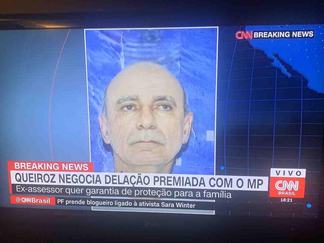 Fabrício Queiroz, ex-assessor de Flávio Bolsonaro preso em Atibaia no dia 18, estaria negociando uma delação premiada com o MP do Rio, segundo a CNN.