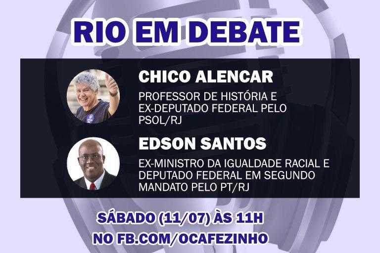 O programa Rio em Debate será veiculado neste sábado (11) às 11h na página do Facebook do Cafezinho e contará com as participações de Chico Alencar e Edson Santos para uma conversa sobre as eleições municipais de 2020 no Rio de Janeiro.