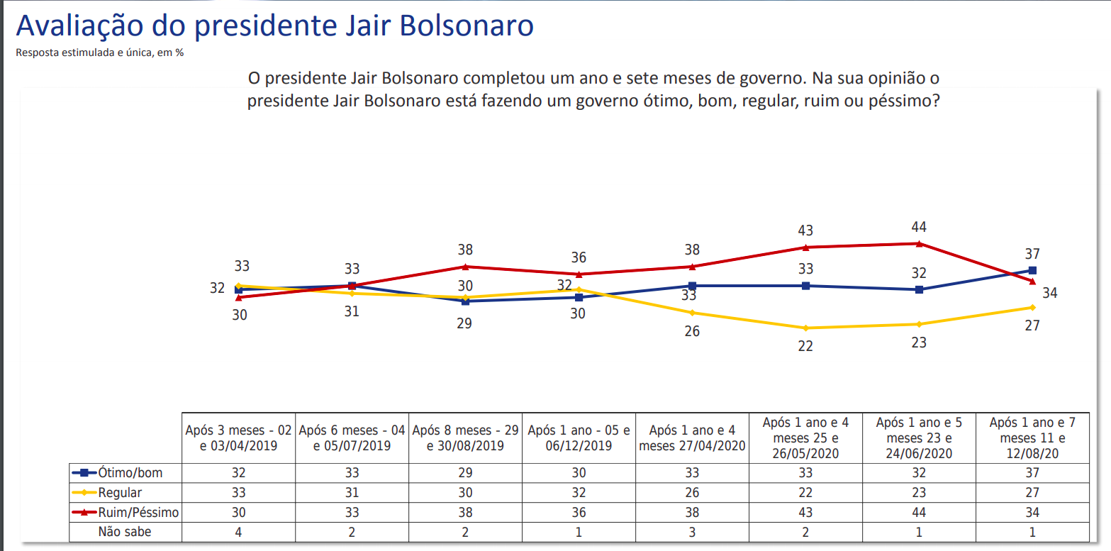 A situação precisa se acomodar um pouco, sobretudo com a chegada da vacina contra a Covid-19, para que se possa avaliar a real aprovação de Bolsonaro, mas eu arriscaria que ela é menor do que esses números indicam.