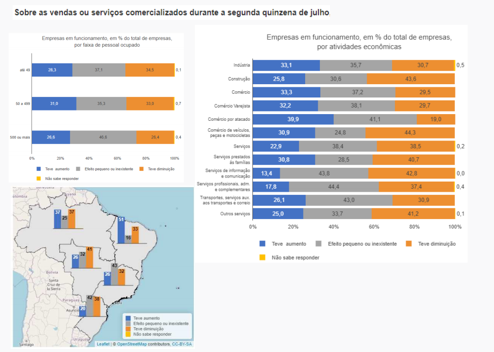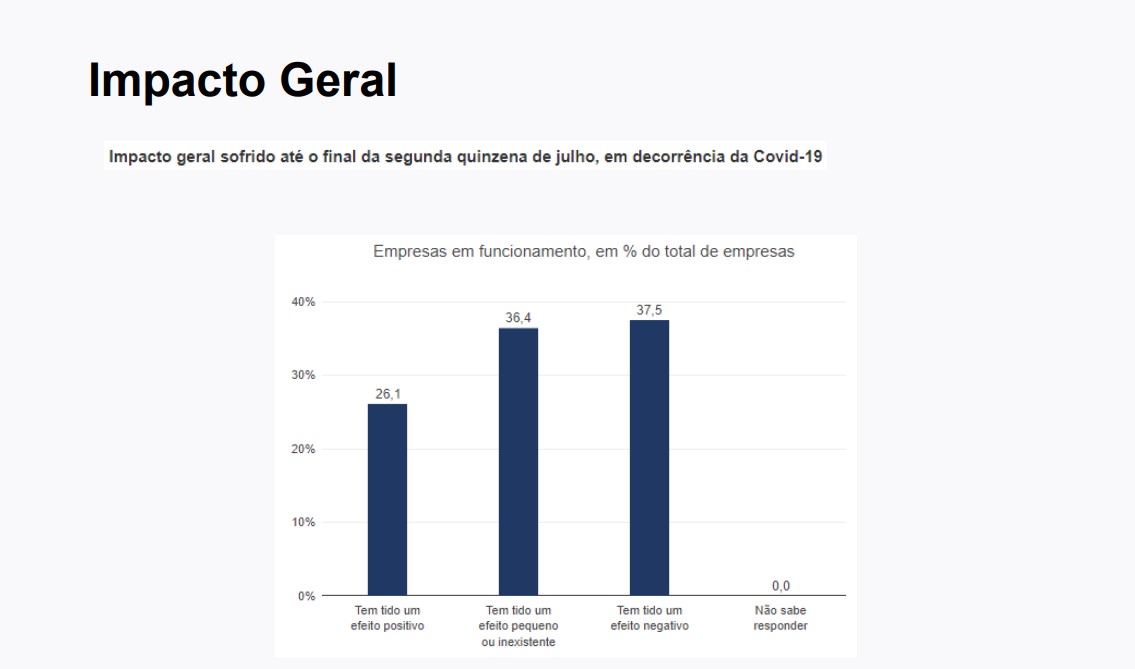 Dos 3 milhões de empresas em funcionamento na segunda quinzena de julho, 37,5% afirmam que a pandemia afetou suas atividades negativamente.