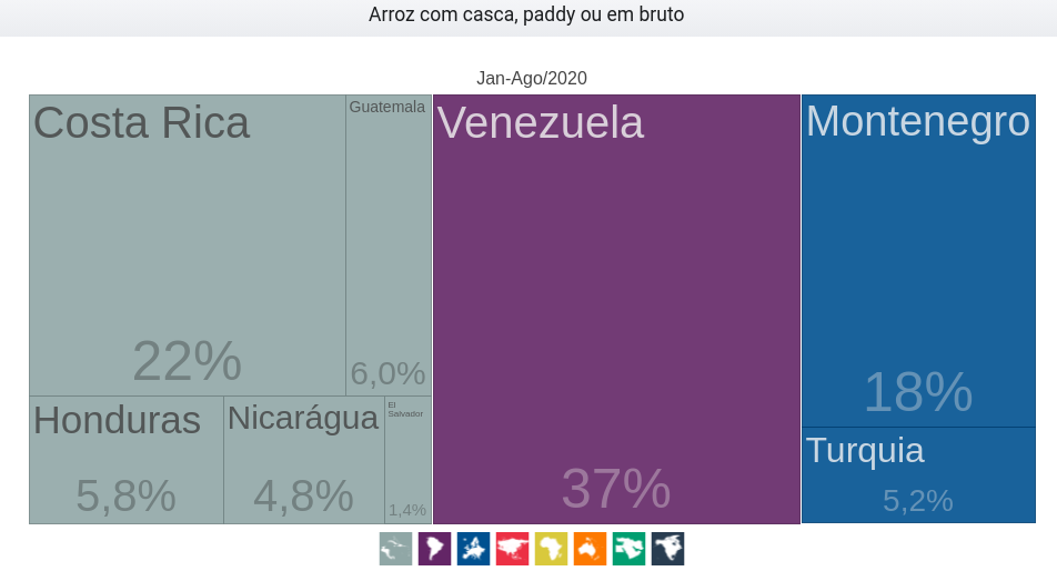 O principal destaque é a Venezuela, que comprou 13% de nosso arroz sem casca, e 37% do arroz com casca!