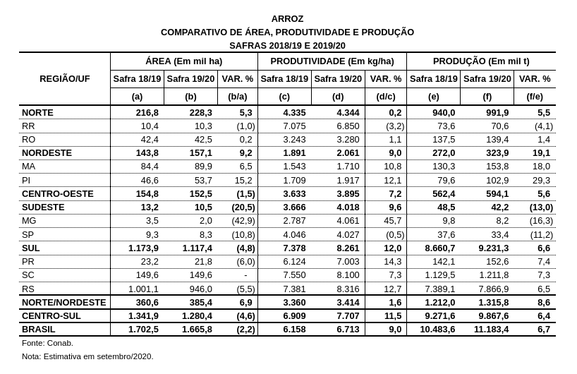 Os últimos números da Conab apontam uma safra de 11,18 milhões de toneladas de arroz em 2019/20 (safra atual), alta de 7% sobre o ano anterior. A produtividade este ano deve crescer 9% (porque a área plantada deverá cair 2%).