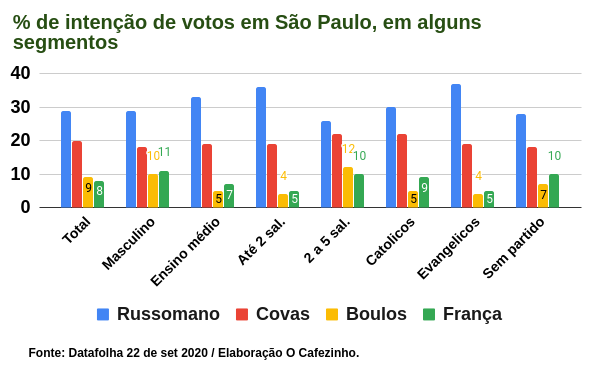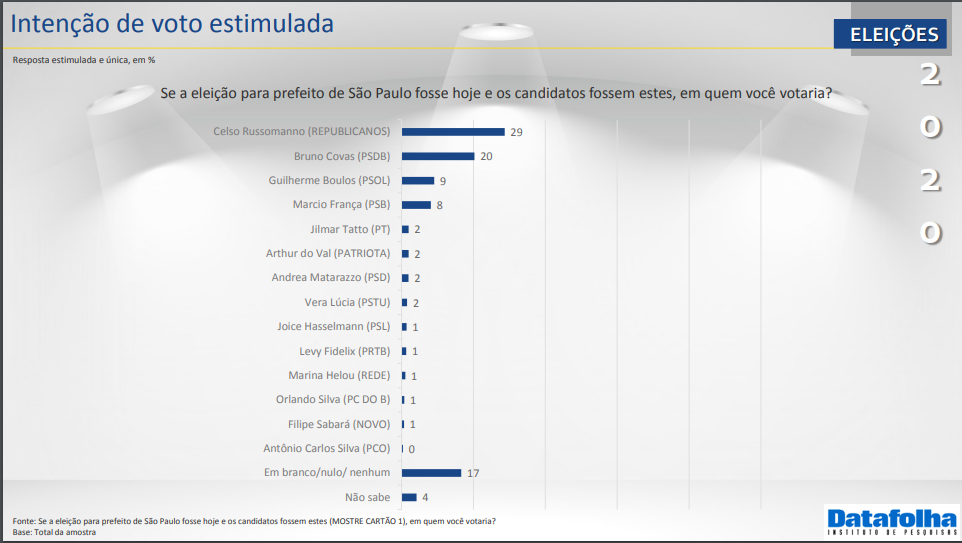De qualquer forma, tanto Boulos como França terão o desafio central de desinflar as intenções de voto em Russomano e Covas. O histórico de outras eleições favorece a suposição de que isso é viável, mas isso somente o tempo irá dizer.