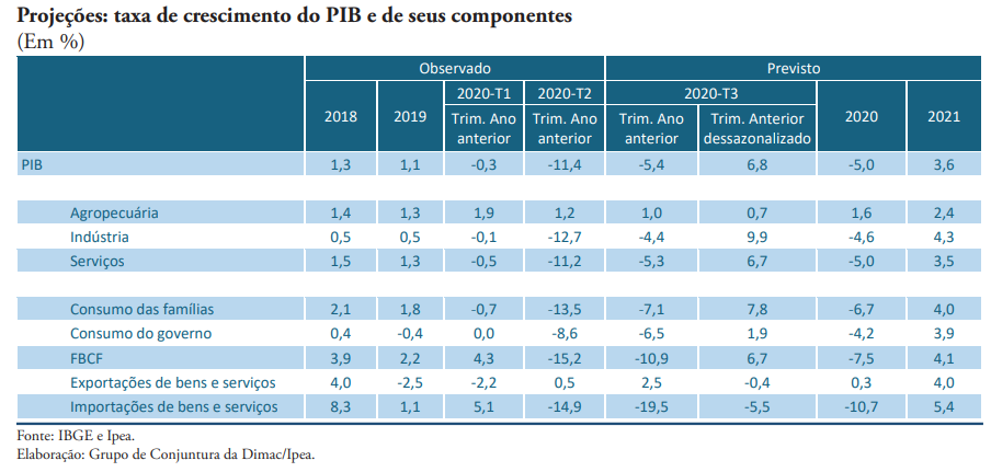 O IPEA divulgou um estudo bastante completo sobre o desempenho da economia brasileira nos últimos anos, e com projeção para 2020 e 2021.