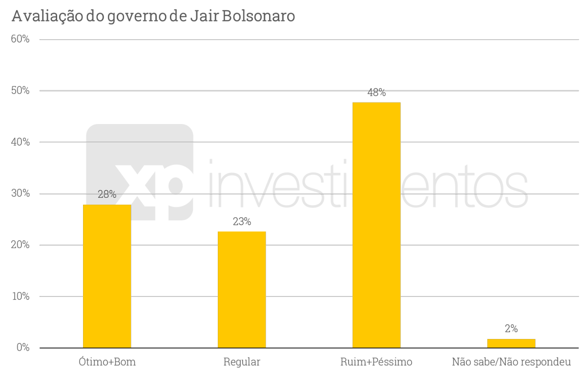 Entre seus próprios eleitores na cidade de São Paulo, Bolsonaro tem 53% de ótimo/bom, 27% de regular e 19% de ruim e péssimo. Entre eleitores que não foram votar em 2018, ou que votaram nulo, Bolsonaro é rejeitado por 52% e 64%, respectivamente.