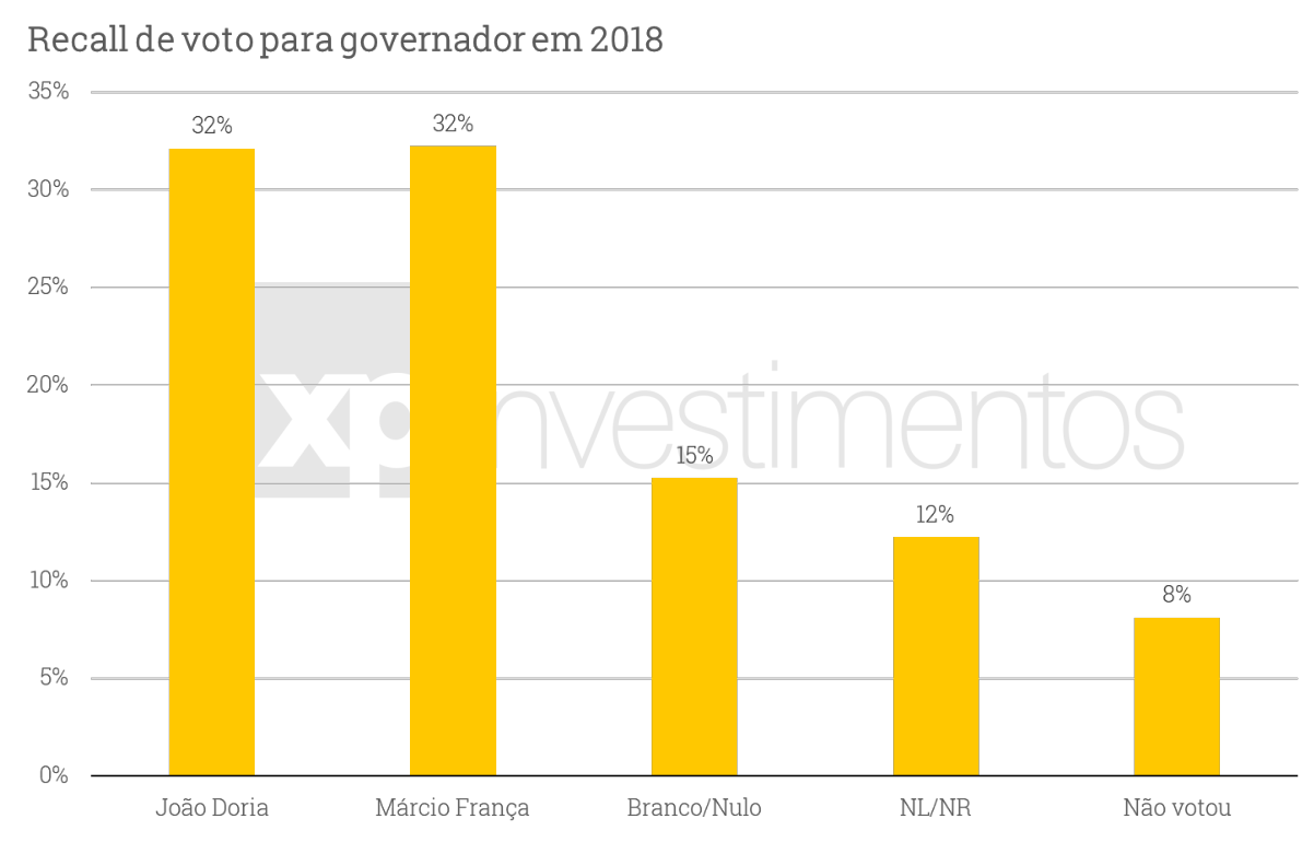 Um dos principais trunfos de França é seu alto recall de 2018, quando foi candidato a governador. Em algum momento, o eleitor irá se lembrar. Na pesquisa XP/Ipespe, 32% dos entrevistados responderam que votaram em Marcio França para governador em 2018.