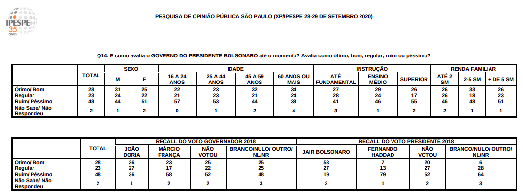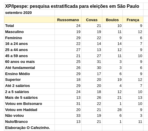(Atenção, neste post, eu também comento a nova pesquisa XP/Ipespe para as eleições em São Paulo, divulgada hoje, cujo relatório estratificado tivemos acesso).