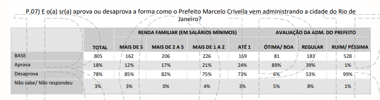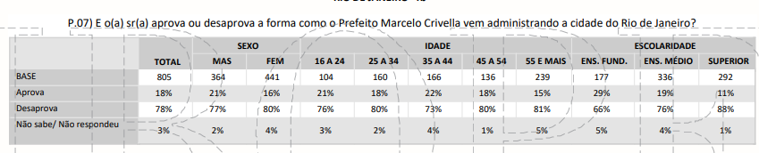 A novidade é que a administração de Marcelo Crivella é reprovada por 78% dos eleitores.