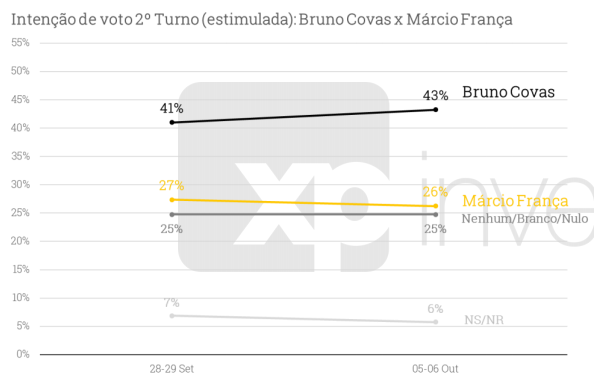 França perde de Covas com diferença de 17 pontos e de Russomano por 13 pontos.