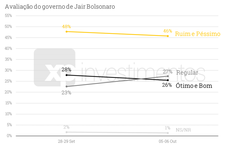 Bolsonaro perdeu dois pontos de aprovação, mas também perdeu 2 pontos de rejeição; houve aumento dos eleitores que consideram seu governo como “regular”, o que também não é um bom sinal para os candidatos que contavam com a polarização nacional da campanha paulistana.